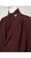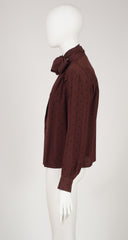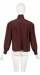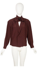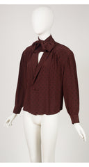 1980s Patterned Mahogany Silk Tie-Neck Blouse