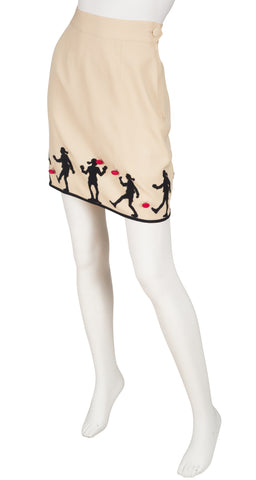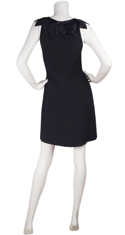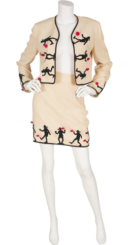 1990s Envelope Pocket Black Crepe Mini Skirt Suit
