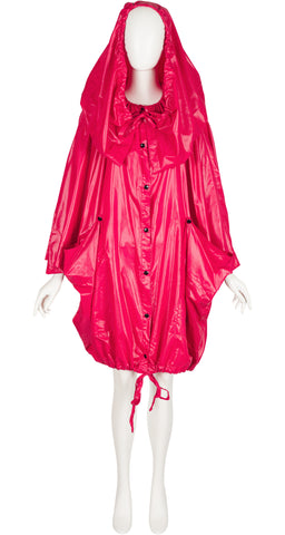 This 1950s "Styled by David" double-breasted coat was made in the USA from Pinto black textured chevron wool. It has a black satin lining and a decorative satin trim around the sleeves and collar, with a bow on each side of the collar. It buttons up the front, and has a pocket on each side. The ILGWU label is still attached. It's in excellent condition, has been professionally dry-cleaned and is ready to wear.
