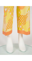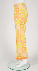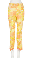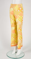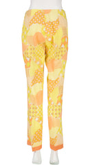 1960s Psychedelic Yellow Patchwork Print Straight-Leg Trousers