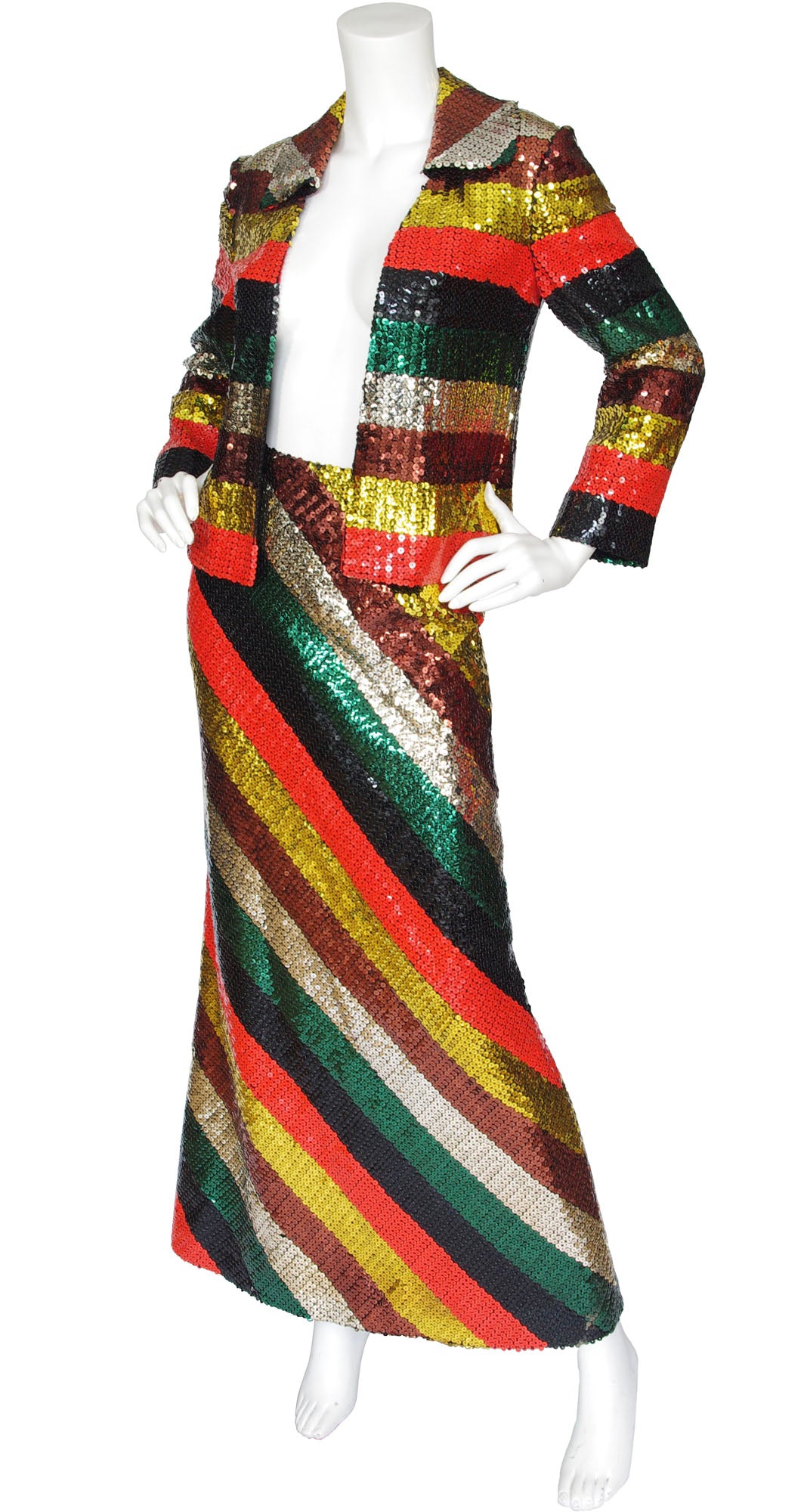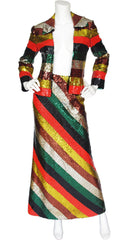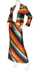 1970s Rainbow Striped Sequin Jacket & Maxi Skirt Set
