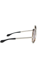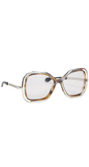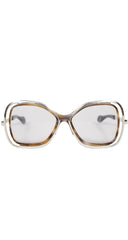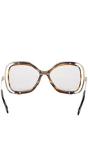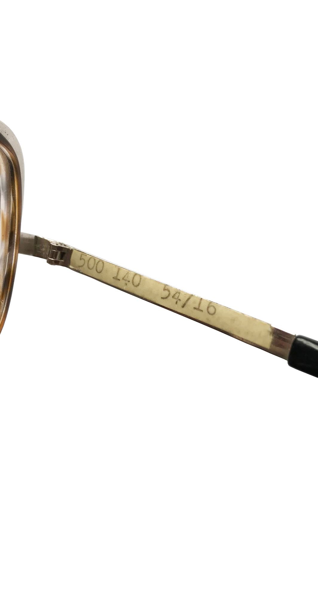 These Silhouette eyeglasses are model 500 and deadstock; they still have the original sticker that lists the model and size (covering the “Silhouette” stamp). I’ve seen these listed as being from 1978. The frames are tortoise shell with silver plastic cut-outs. They are size 54/16, with a 140 temple size. They were made in Austria. The sample lenses that are currently in have scratches, and there is also some very minor surface scratches on the silver. Otherwise, they are in very good condition.