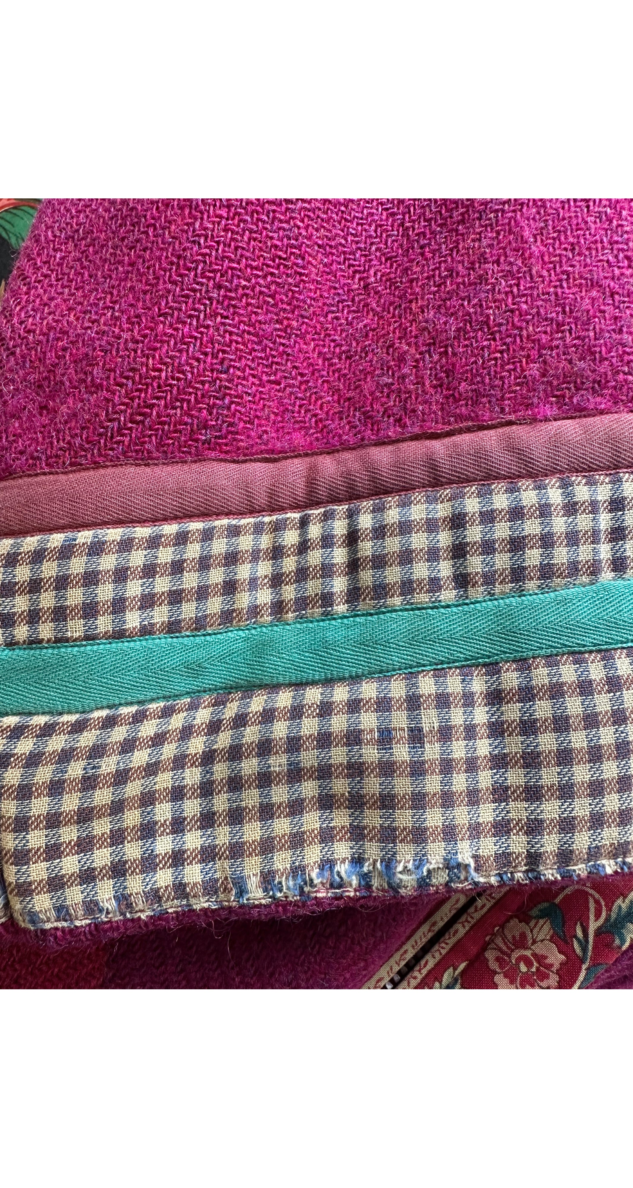 1980s Floral Patchwork Magenta Wool Tie Coat