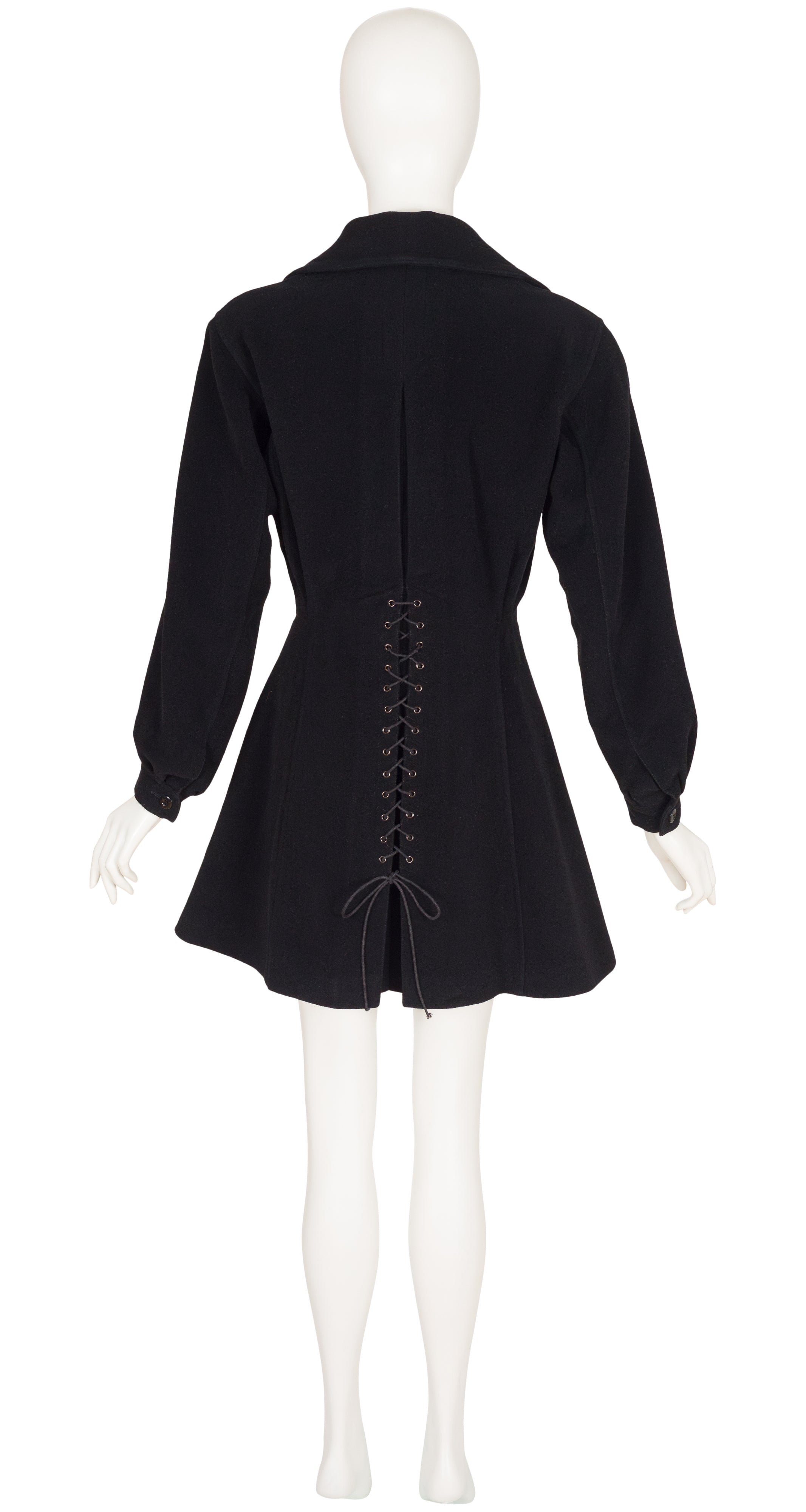 1990-91 F/W Runway Black Wool Lace-Up Back Coat