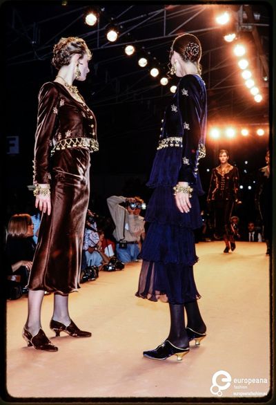 1989 F/W Gold Metallic Pom Pom Black Velvet Skirt Set