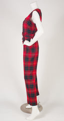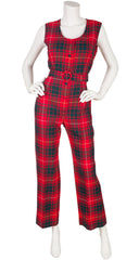 1970s Red Plaid Wool Sleeveless Jumpsuit
