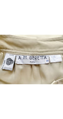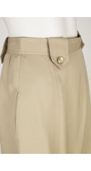 This 1980s Anne-Marie Beretta high-waisted pleated midi skirt is made from a lined khaki wool gabardine. The belt loops have Beretta's signature pearlized snaps. There's a pocket on each side and a 9.5" slit up the left side. It fastens at the back with a concealed zipper and a hook at the waistband. It's in excellent condition, has been professionally dry-cleaned and is ready to wear.