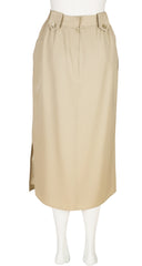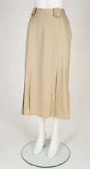 1980s Khaki Wool Gabardine Pleated Midi Skirt