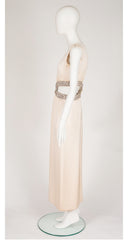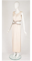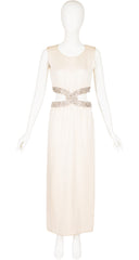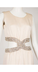 1967 Beaded Cut-Out Ivory Silk Evening Gown