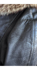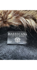 The coat also has a Harricana tag attached. Harricana is a Montreal company known for upcycling fur. This coat was purchased in their vintage section, and maintains its original design. There are a few nicks in the leather but it's overall in very good condition.