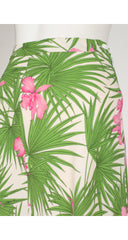 This 2004 S/S Céline by Michael Kors runway A-line skirt was made in France of cream silk with a green and pink tropical floral print. The lining is also silk. The skirt fastens with a zipper up the left side and a "CELINE"-signed button at the waistband. It's in excellent condition, professionally dry-cleaned and ready to wear.