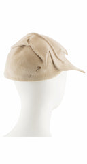 1950s Figural Leaf Beige Wool Felt Hat