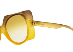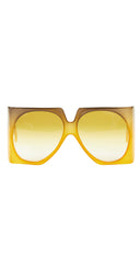 These rare 1970s Christian Dior sunglasses are model D03. The frames are oversized gradient plastic, in a square shape. They are 155 mm (6.1") wide, 70 mm (2.75") high, with a 120 mm (4 3/4") temple size. We would consider these glasses to be in fair condition. There are some scratches on the lenses, frames, and the black enamel in the "CD" has worn off. They have been priced accordingly and remain a fantastic piece of fashion history.