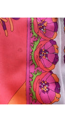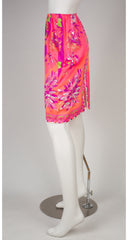 This Emilio Pucci for Formfit Rogers 1960s slip skirt features a classic floral Pucci print in vibrant colors and "EPFR" signed throughout. It was made in the U.S.A. of nylon with an elastic waistband and 7.5" slit up the back. It is in very good condition, with just one small mark on the back (see the last photo). It is clean and ready to wear.