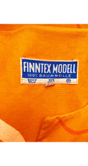 This 1970s Finntex Modell tunic top is made from an unlined orange cotton with a Marimekko-style design. It has wide three-quarter length sleeves. It slips over the wearer's head with no closures. Overall, it's in very good condition; it has light black marks on the front and back left shoulder. They are very discreet but have been factored into the price. Please see the last two photos. It is clean and ready to wear.
