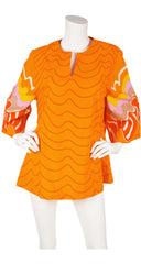 1970s Orange Cotton Wide Sleeve Tunic Top