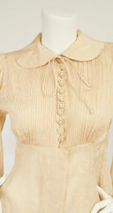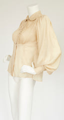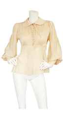 1970s Cream Silk Jacquard Bishop Sleeve Blouse
