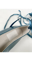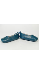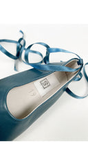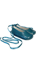 2000s NOS Teal Lambskin Lace-Up Ballet Shoes