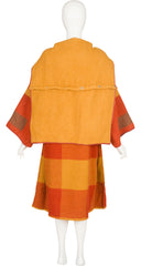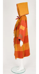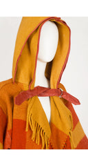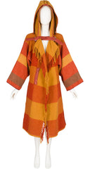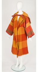 1980s Orange Plaid Wool Hooded Blanket Coat