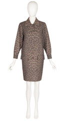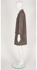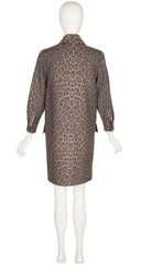 1990s Leopard Print Wool Collared Long Sleeve Dress
