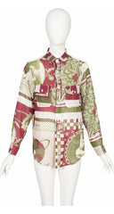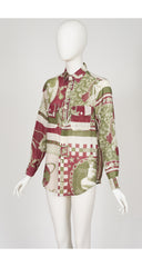 1990s Men's Graphic Print Cotton Voile Button-Up Shirt