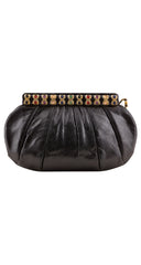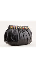 1980s Multi-Color Cabochon Black Reptile Skin Clutch