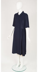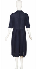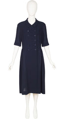 1989 S/S Runway Navy Wool Crepe Double-Breasted Dress