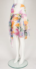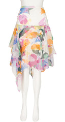 2000s Fish Print Silk Chiffon Handkerchief Hem Skirt
