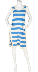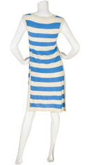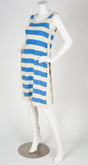 1976 S/S Runway Blue & Cream Striped Wool Tunic Dress