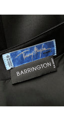 This 1990s Thierry Mugler dress was made in France and originally sold at Barrington. It's a fully-lined very fine black wool that does up the back with a hidden zipper. It has a wide pointed neckline with two black beaded adornments. The dress is in excellent condition, has been professionally dry-cleaned and is ready to wear.