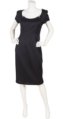1990s Black Wool Pointed Neckline Dress
