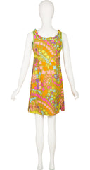 1960s Mod Chartreuse Cotton Ruffle Beach Dress