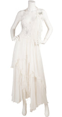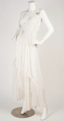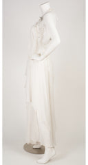 1970s Ethereal Rhinestone White Chiffon Disco Dress